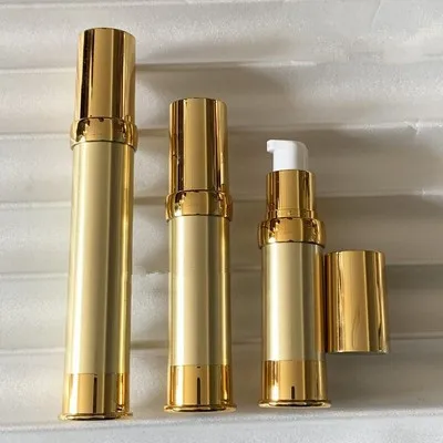 10 шт Роскошные Золотые Серебряные Пустые безвоздушные бутылки для насоса мини портативные вакуумные косметические бутылки для лосьона