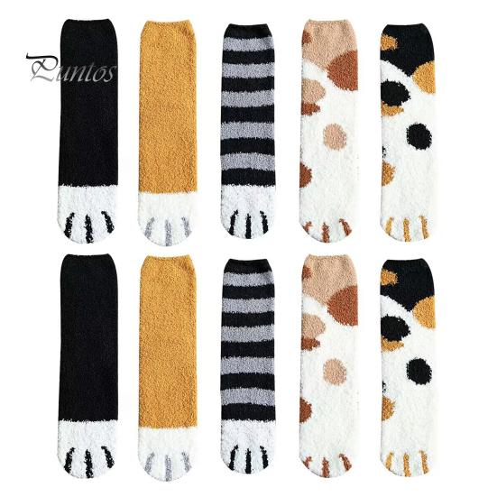 5 пар женских носков из плотного кораллового флиса с рисунком кошачьей лапки, подходящие по цвету, средней длины, эластичные, нескользящие, теплые, для повседневной носки для дома Sets