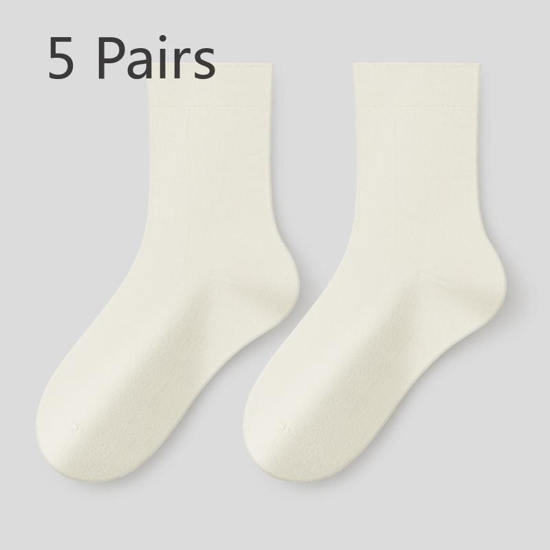 5 пар женских носков из чистого хлопка с антибактериальным ворсом без косточек в весенне-осеннем стиле 5 Pairs молочный белый