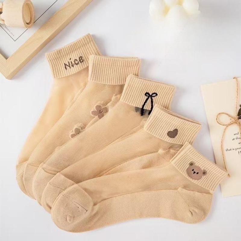 5 пар женских сексуальных носков, милые кружевные носки с изображением кошек, нейлоновые носки в стиле аниме Y2k для девочек, черные дышащие женские носки, комплекты 5 pairs