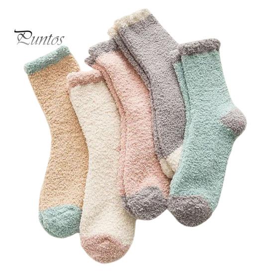 5 пар зимних носков из толстой микрофибры, разноцветные, средней длины, размер 6-10, противоскользящие, высокоэластичные, сохраняющие тепло, пушистые носки для сна разноцветный