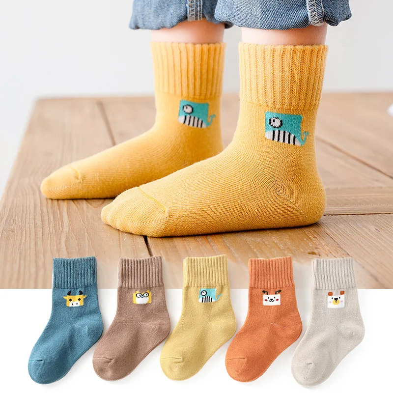 5 пар/лот; Детские хлопковые носки; Милые теплые носки с героями мультфильмов для маленьких мальчиков и девочек; Сезон осень-зима; От 0 до 12 ле...