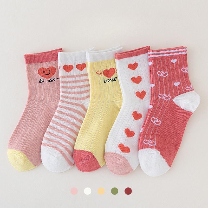 5 пар/лот, детские мягкие носки, носки с цветочным принтом и сердечками для маленьких девочек, осенне-зимние теплые детские носки среднего размера 10-12Y