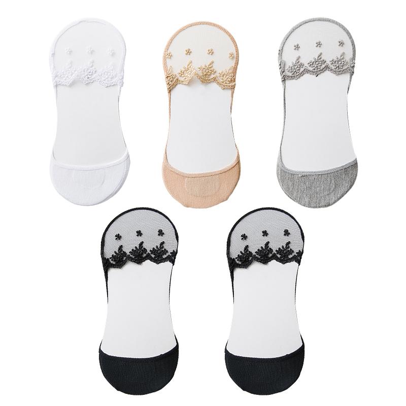 5 пар/лот новые женские летние сетчатые носки прозрачные короткие кружевные сексуальные прозрачные милые невидимые нескользящие белые носки-тапочки One size