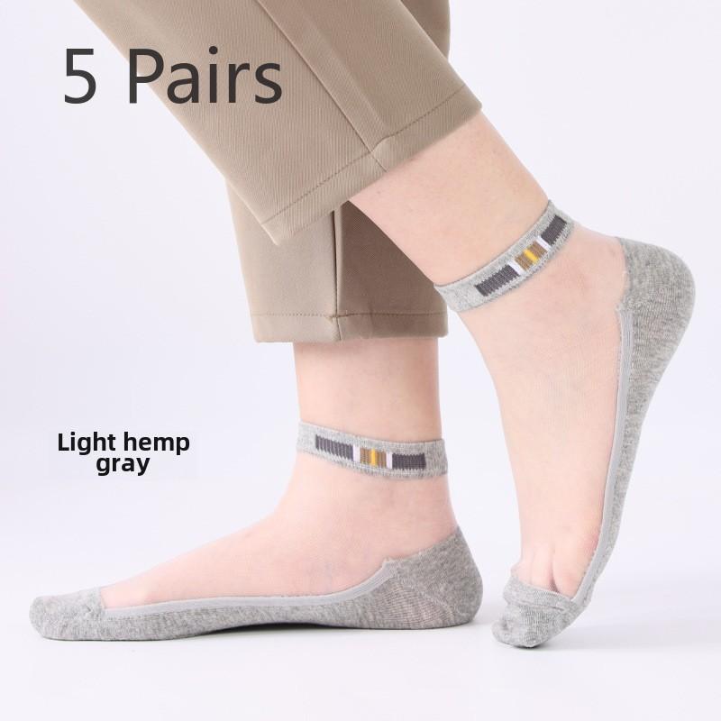 5 пар мужских носков весна/лето тонкий простой стиль стеклянный шелк мужские носки модные хрустальные шелковые мужские носки чулки One size светло-серый