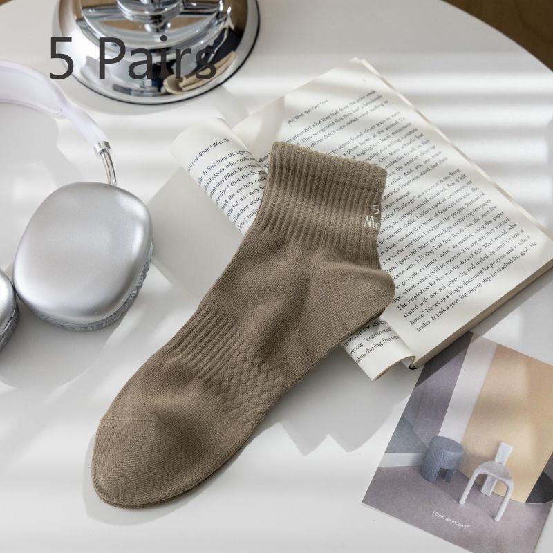 5 пар носков Мужские носки до середины икры Весна и осень Однотонные хлопковые спортивные носки на шнурке Вышитые буквы Короткие носки Дышащие 5 pairs хаки