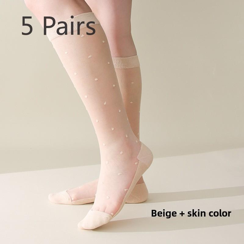 5 пар стеклянных чулок, детские длинные летние тонкие носки с ворсом в горошек, носки для икр в мелкий горошек 5 Pairs бежевый