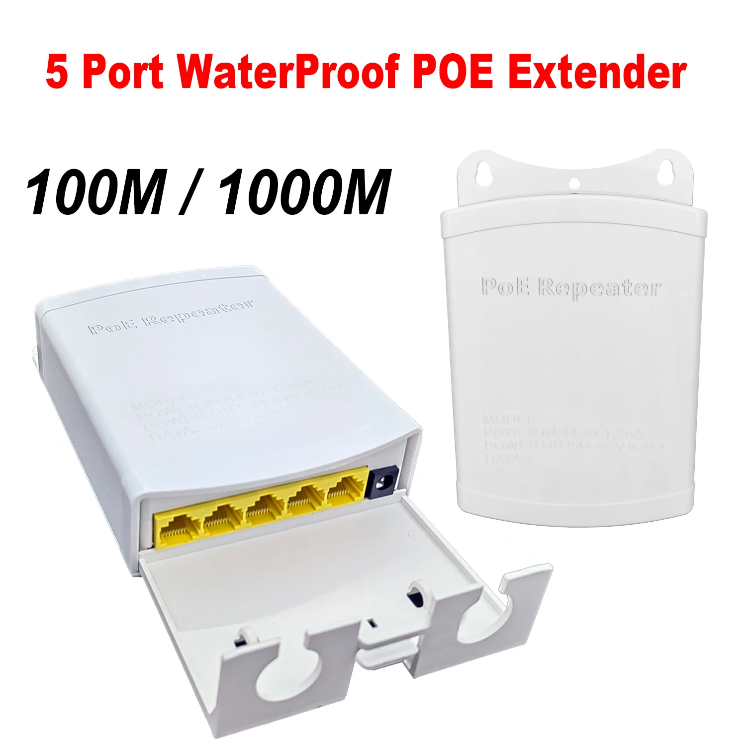 5-портовый водонепроницаемый удлинитель POE, 4-портовый повторитель, 100/1000 Мбит/с, наружная сеть IP55 VLAN 44-57 В для камеры POE, безмерная точка доступа