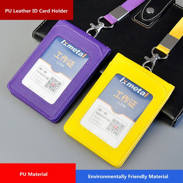 5 слот для карты вертикальный кожаный бизнес id кредитных карт держателе бейджа ясно чехол подлинный id знак держатель с шеи ремень