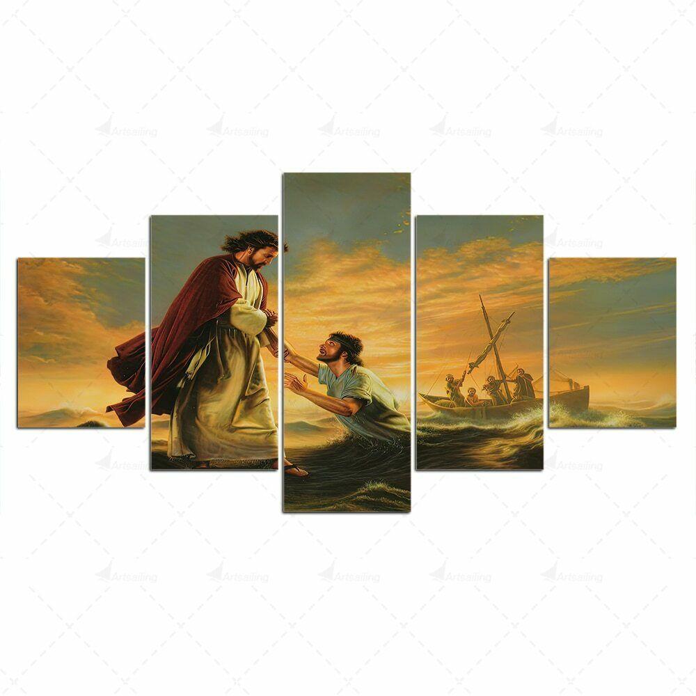 5 шт. Иисус Религия Вера Морской Декор Холст Картина Настенные Художественные Картины Плакат HD Печать Домашний Декор 5 Панель Декор Комнаты Современный