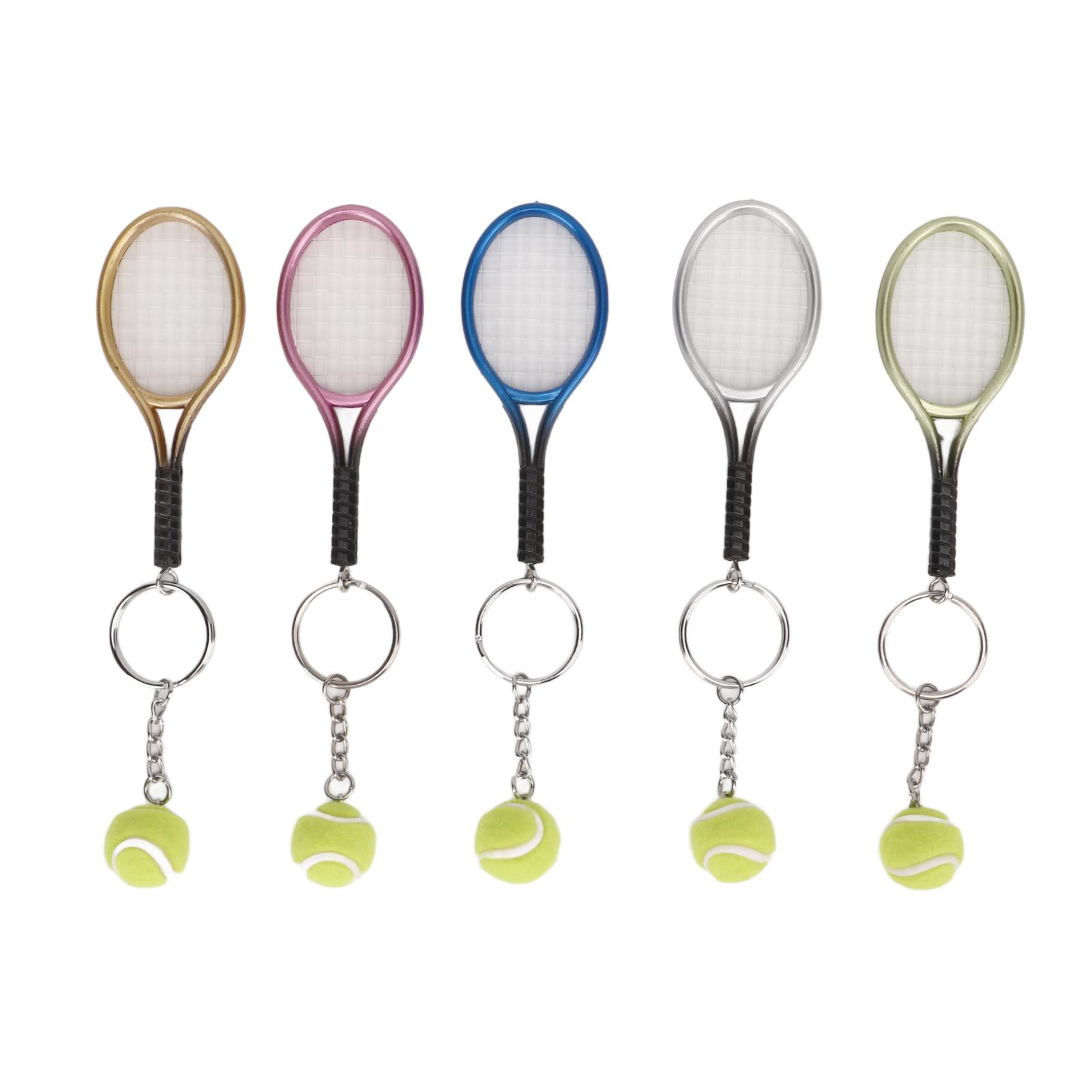 5 шт. Мини теннисная ракетка мяч брелок подвеска кольцо для ключей золото серебро розовый синий бронзовый для подарков любителям спорта