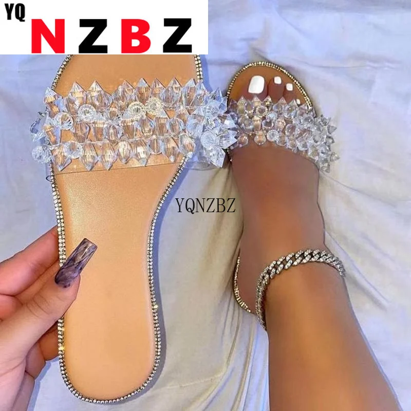 Summer Women Slippers 2021 Fashion Women Flat Retro Rhinestone Sexy Comfortable Color Matching Open Toe Outdoors Beach Slippers