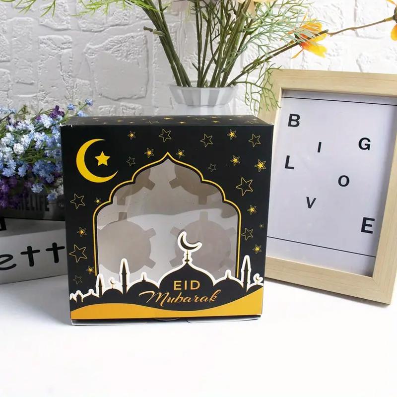 5 шт. Подарочная коробка «Луна и звезда», коробка для закусок на Рамадан, Ближний Восток, Новый год, ПВХ-окно, коробка для торта, новая упаковочная коробка, черно-белая 5pcs