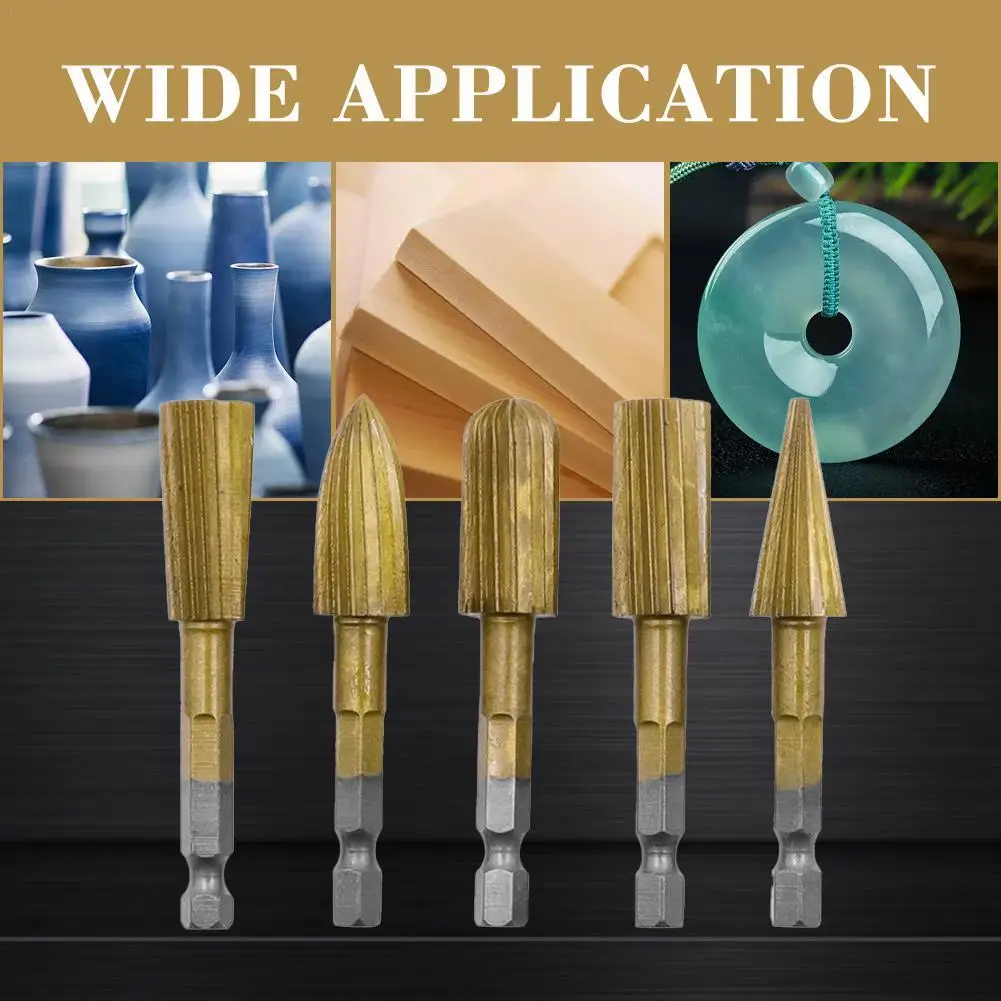 5 шт. высокоскоростные стальные столярные роторные напильники для резьбы из смолы керамики дерева 6,3 мм Шестигранная ручка электрический шл...