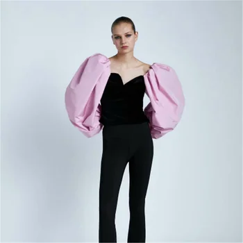 Блузка женская шифоновая с бантом, модный топ во французском стиле с полувысоким воротником и рукавами-фонариками, в Корейском стиле, на весну