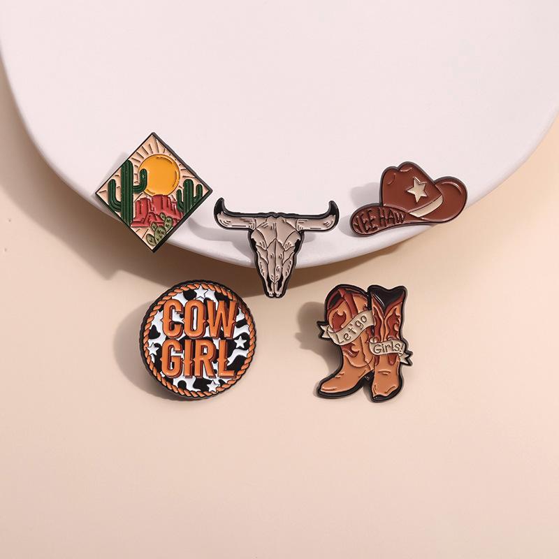 5 шт. коричневая серия, эмалированная булавка, милая универсальная шляпа, ботинки, брошь в виде головы быка, металлический значок, аксессуары для одежды, булавка на лацкане, корсаж