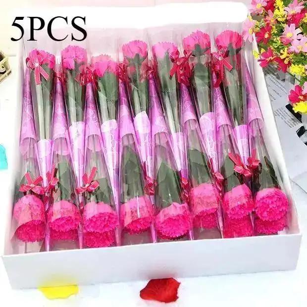 5 шт./лот Товары на День святого Валентина Ванна Искусственный цветок гвоздики Вечеринка Подарок на День матери Украшение Подарок на День святого Валентина 5pcs rosered