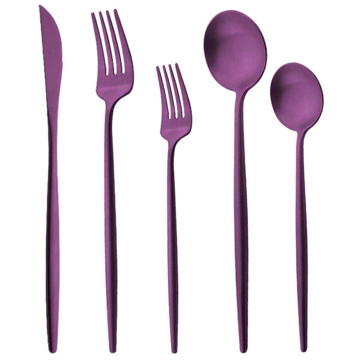 5 шт., матовая круглая ручка, серебро 18/10, набор столовых приборов из нержавеющей стали, нож, вилка, ложка, посуда, набор столовых приборов фиолетовый