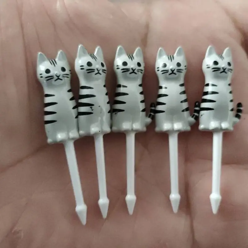 5 шт. мини мультяшная маленькая серая вилка для кошек, фруктов, пирожных, десертов, еды, фруктов, вилка для фруктов, палочки для еды, праздничн...