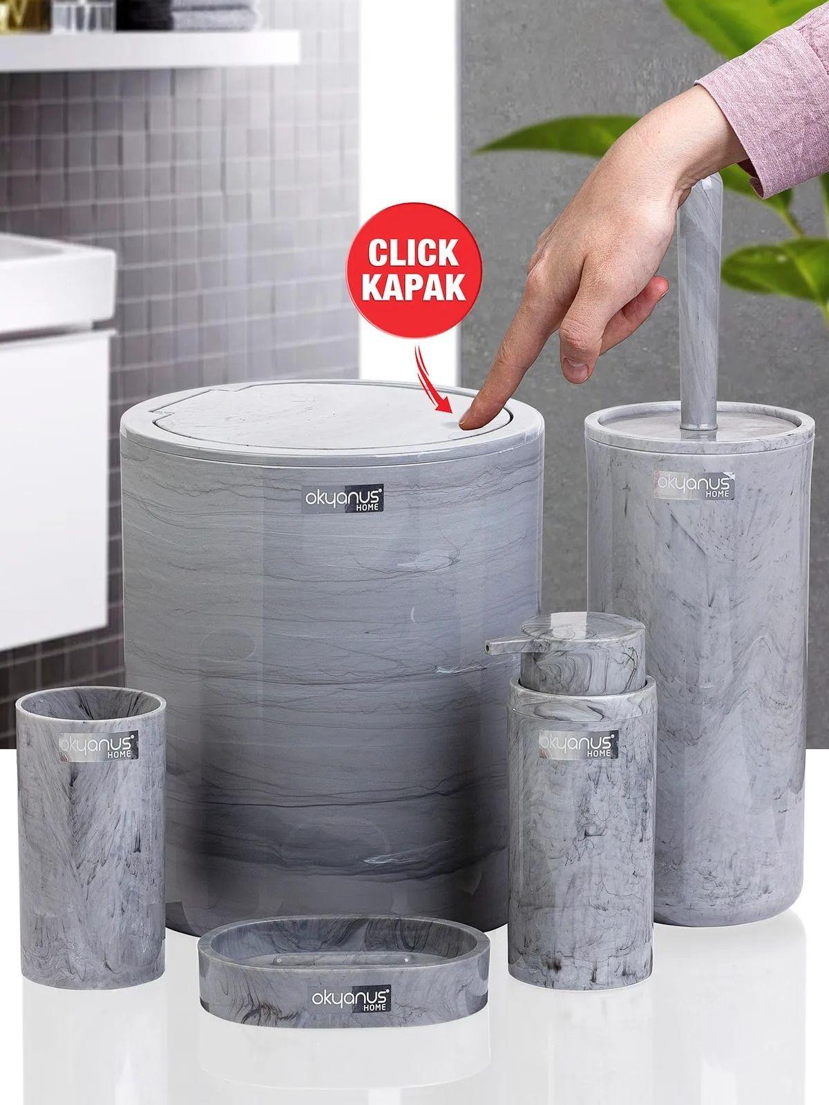 5 шт., набор аксессуаров для ванной комнаты с круглым мраморным узором, роскошный дизайн, держатель для зубной щетки, лосьона, дозатор мыла, туалетная щетка, мусорное ведро