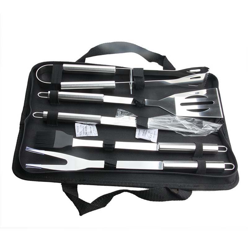 5 шт., набор инструментов для гриля, нержавеющая сталь, щетка для барбекю, нож, вилка, лопатка, зажим для еды с сумкой для хранения, барбекю