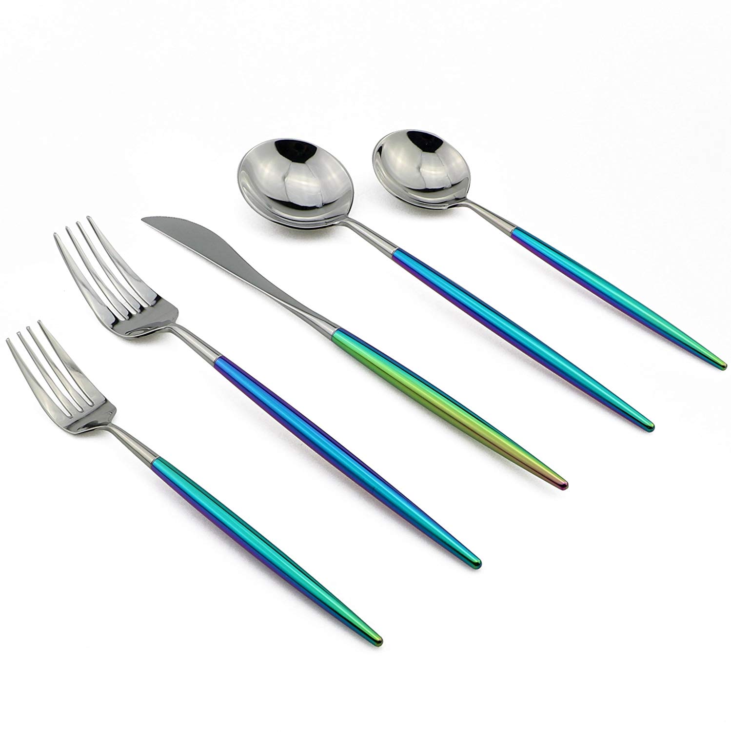 5 шт., набор столовой посуды из нержавеющей стали 18/10, роскошные радужные, золотые, зеркальные наборы посуды, ножи, вилки, наборы столовых приборов, сервис для 1 service for 1 серебряный