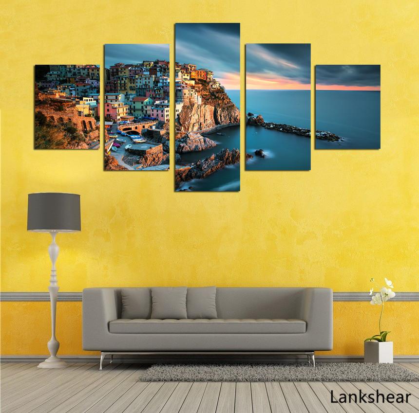 5 шт., печать на холсте, пейзажная живопись с закатом, настенные украшения, настенная художественная картина, настенные картины на холсте, рамки, постеры