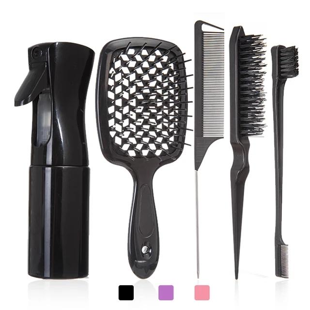 5 шт. расчесок для распутывания волос, массажная антистатическая выдолбленная мокрая начесывающая щетка в виде крысиного хвоста с распылителем, парикмахерские инструменты для укладки