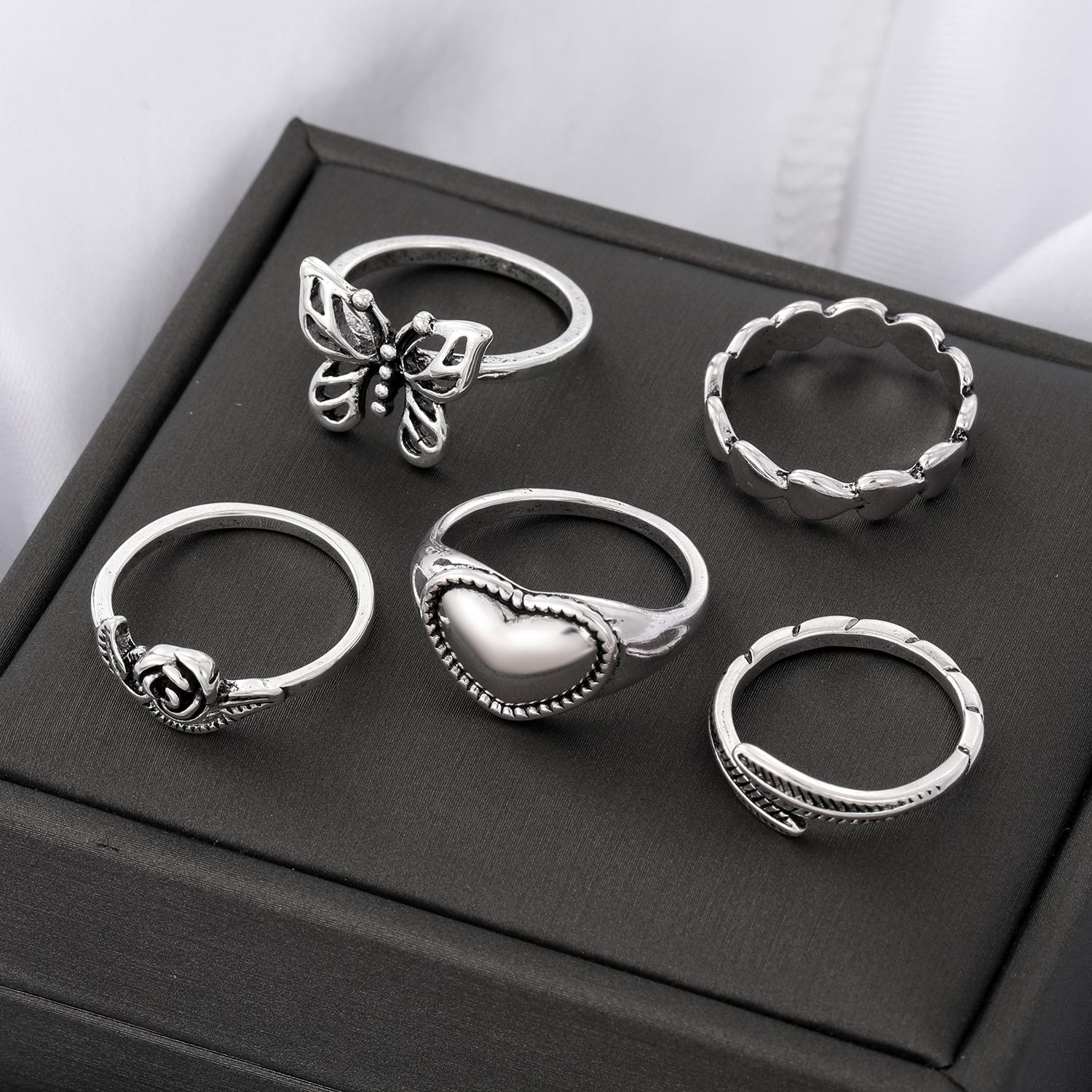 5 шт., резное открытое кольцо с бабочкой, выдолбленное кольцо с розой и темпераментом, набор ювелирных украшений