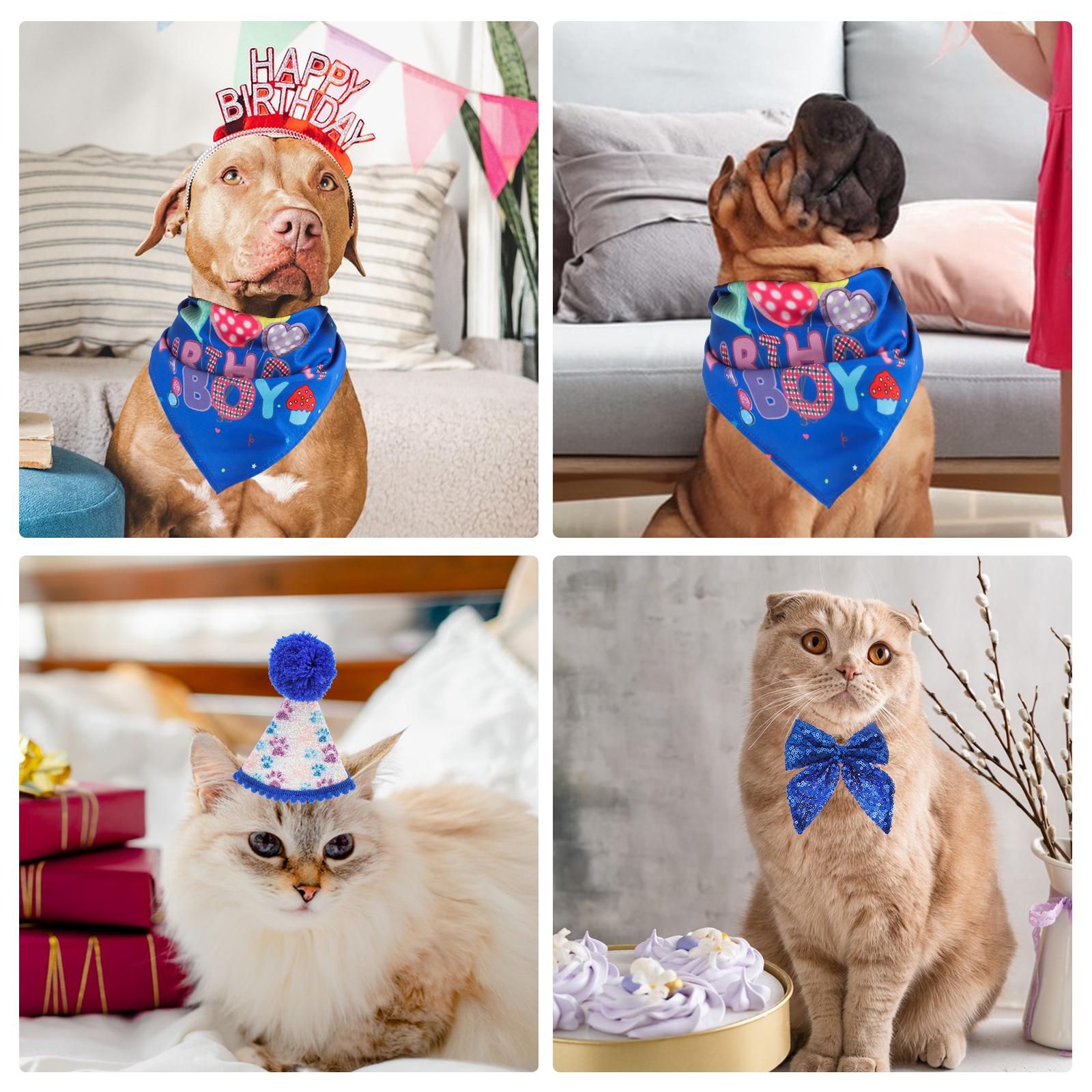 5 шт. розовые и темно-синие наборы на день рождения для собак, бумажные домашние наряды для дня рождения, шляпа для щенка, щенка