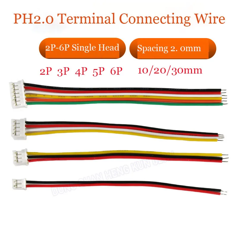 5 шт. PH2.0mm 2/3/4/5/6P односторонняя Клеммная линия, Электронная строка, строевая линия красного и черного цветов