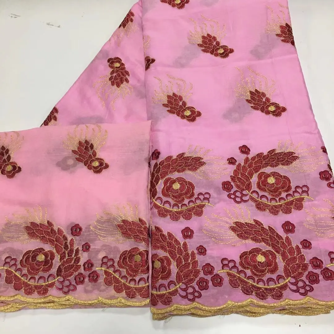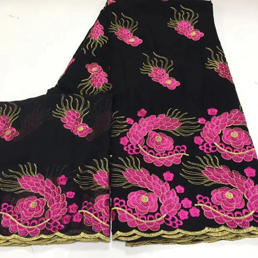 5 ярдов замечательная Королевская Синяя Африканская Хлопковая кружевная ткань с цветочной вышивкой и 2 ярда фуксия искусственная ткань для ...