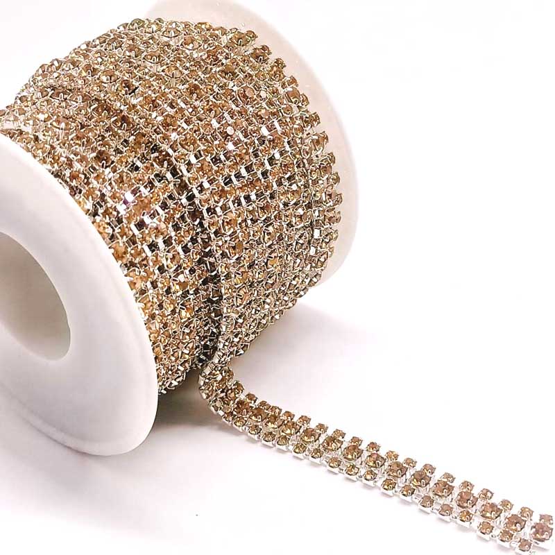 5 ярдов 3 ряда хрустальных цепочек со стразами стеклянная цепочка швейное ремесло своими руками свадебные платья и украшения для вечеринок Shallow coffee Diamond + Silver Seat