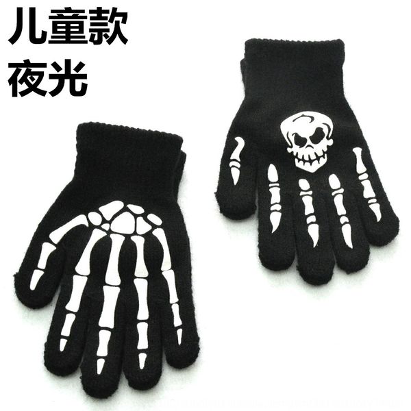 5-12 лет учащихся начальной школы зима теплая вязаная теплая и перчатки хэллоуин ночь светящийся череп призрак коготь перчатки, White