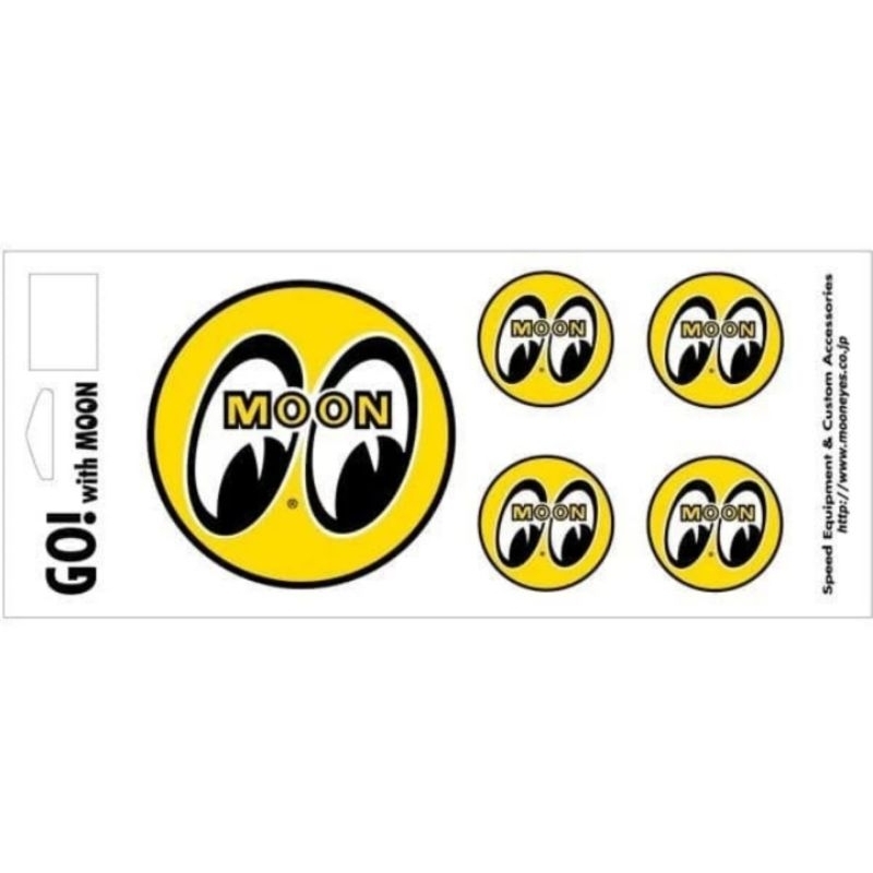 5 Assorted Mooneyes eyeball logo stickers on one sheet.