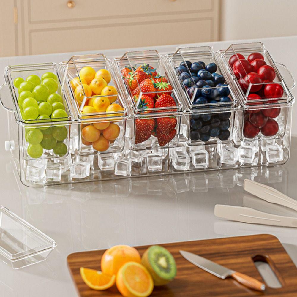 5 Grids Picnic Food Box with Lid Storage Boxes Dustproof Fruit Preservation Box Outdoor прозорий