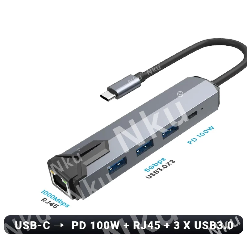5-in-1 USB C Hub Gigabit Ethernet Adapter, with 3 USB 3.0 Data Ports and RJ45 Gigabit LAN Port Compatible with Windows11 MacOS
