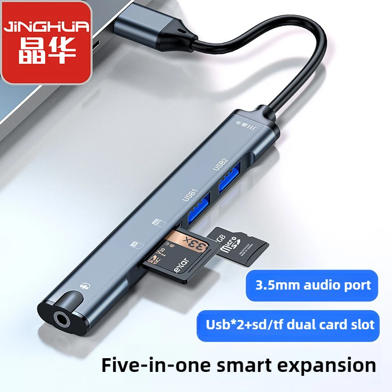 5-in-1 USB Docking Station, Data Sync, Audio Output, Memory Card Reader, Universal Compatibility,Best Seller
