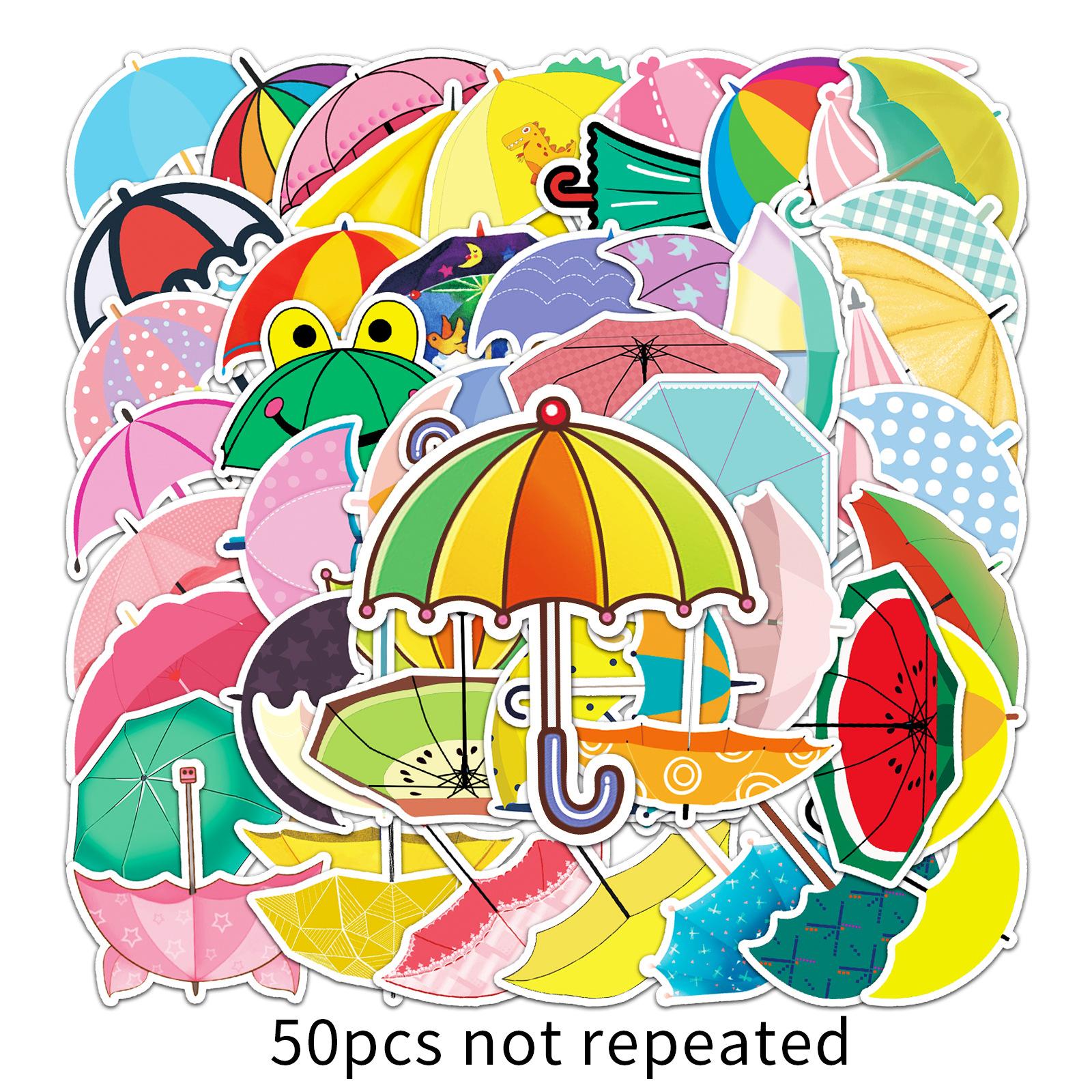 50 Зонтов Граффити Персонализированные Маленькие и Свежие Красочные Детские Ручные Палатки Водонепроницаемые Декоративные Наклейки для Скейтборда, Водяной Стакан, Чемодана