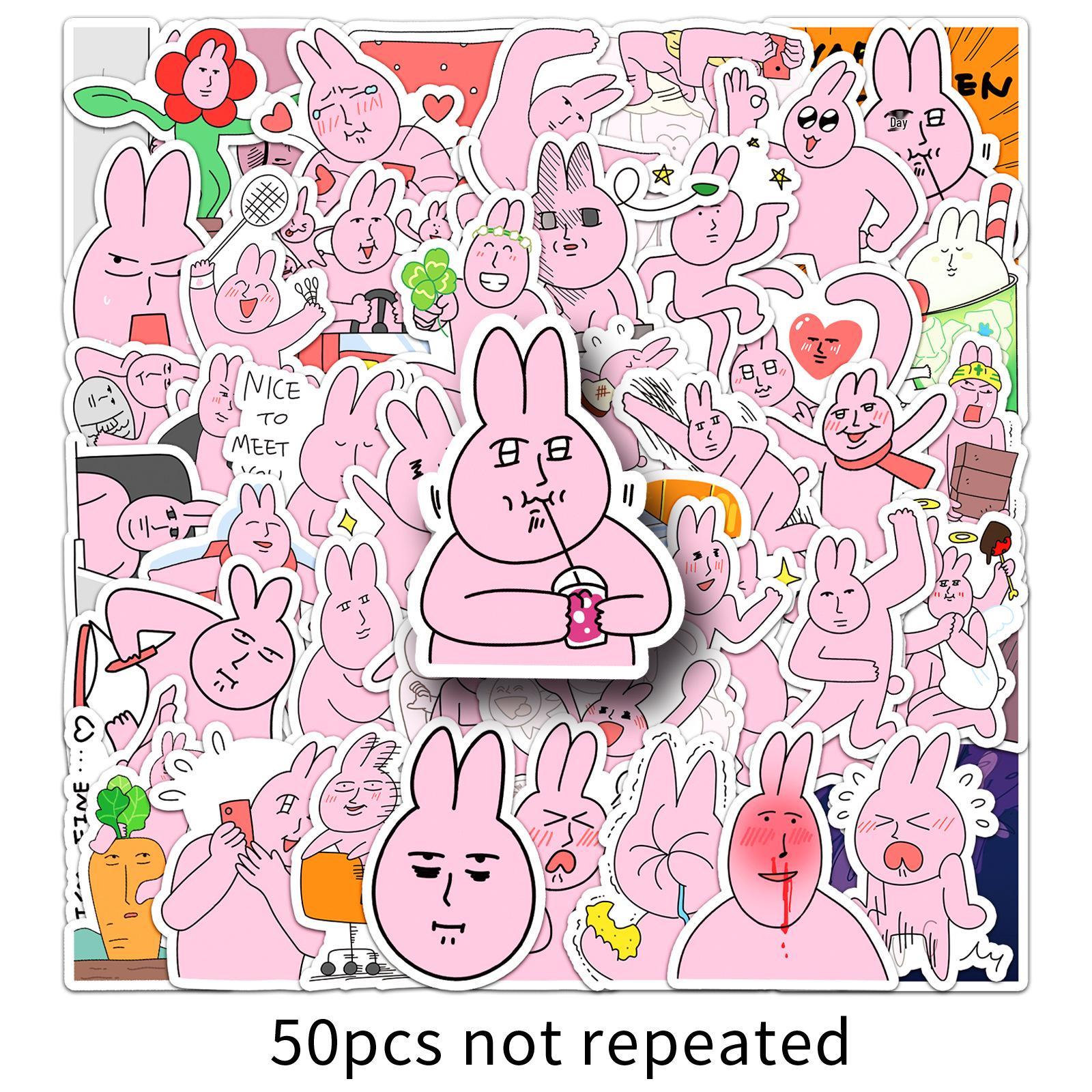 50 Милых Розовых Наклеек Граффити с Кроликами для Чехлов для Телефонов, Стаканов для Воды и Блокнотов