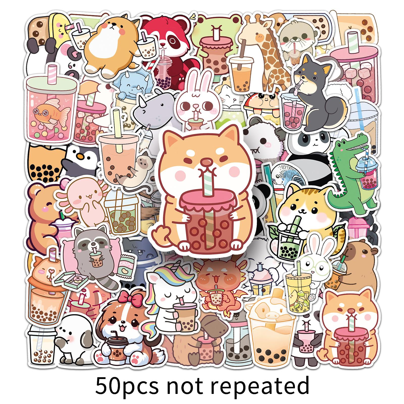 50 Наклеек Граффити Молочный Чай для Питомцев Креативные Мультяшные Милые Животные Декоративные Наклейки-Жвачки для Водного Стакана Мобильного Телефона
