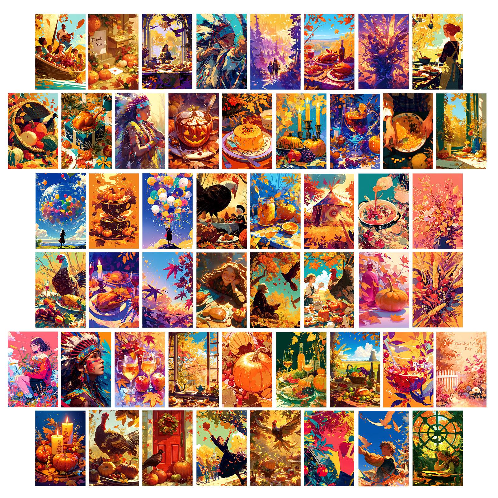 50 Открыток для украшения на День Благодарения Празднование Осеннего Урожая Настенные Карточки для DIY-украшения Спальни для Интерактивного Досуга Родителей и Детей T01042194