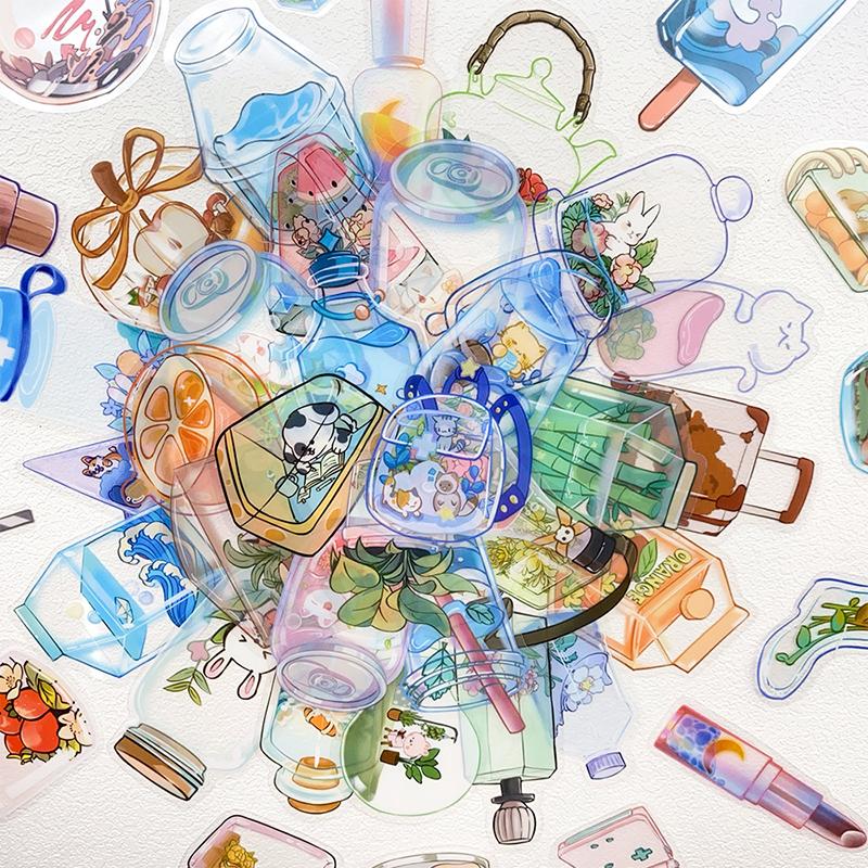 50 листов мультяшных прозрачных наклеек для предметов, симпатичные прозрачные наклейки для стаканов с водой, самодельные наклейки для животных, самодельные наклейки для украшения