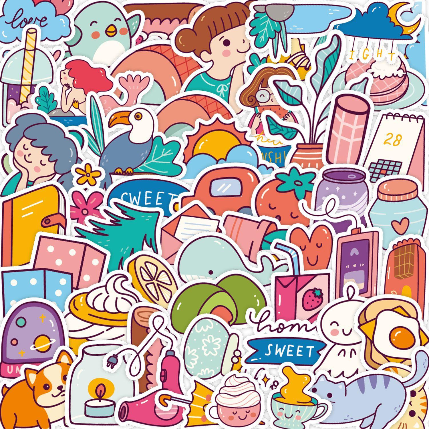 50 милых мультяшных девочек-граффити, наклейки для ноутбука, телефона, чашки с водой, декоративные наклейки, водонепроницаемые наклейки на руку, лот
