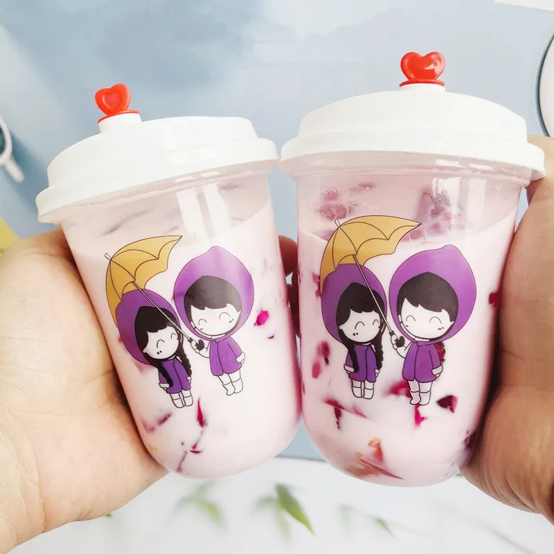 50 шт Мультяшные одноразовые, для молока чайная чашка 400ML прозрачные пластиковые стаканчики день рождения Мороженое йогурта, десертные чашки с крышкой