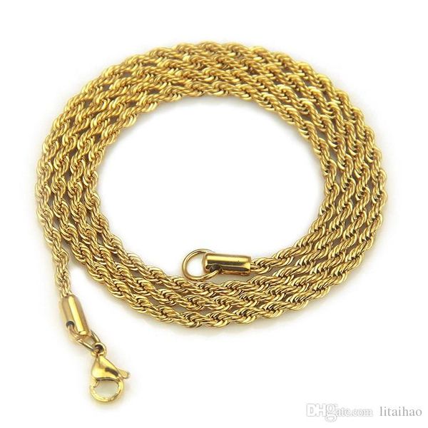 50 шт / много, лучший продавец twisted поворот цепи ожерелье 4мм шириной 18k позолоченный ожерелье сплава материал не выгорают хип-хоп ожере, Silver