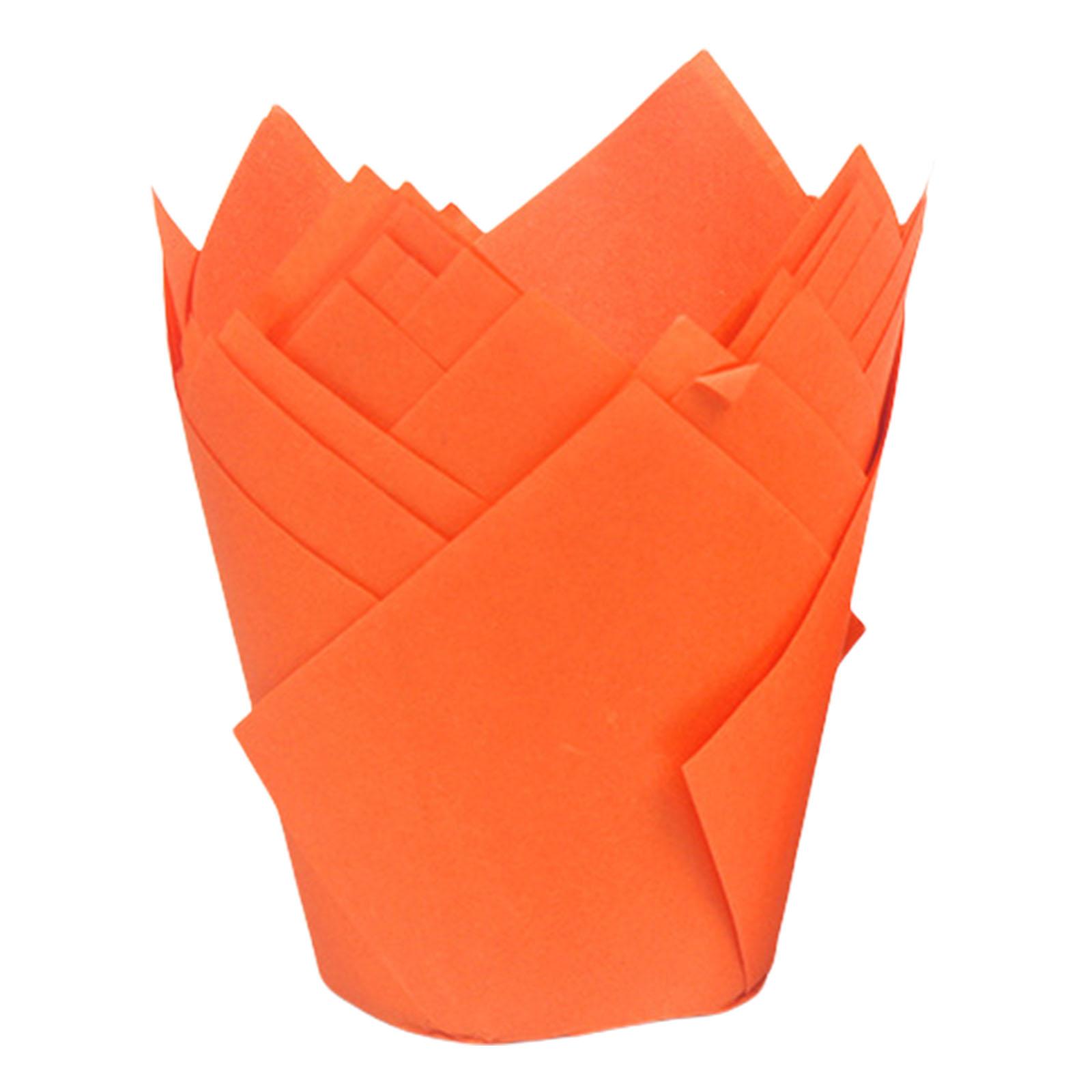 50 шт. Изысканные тюльпановые формочки для маффинов, жиронепроницаемые вкладыши для кексов для выпечки, Рождество, свадьба, день рождения оранжевый