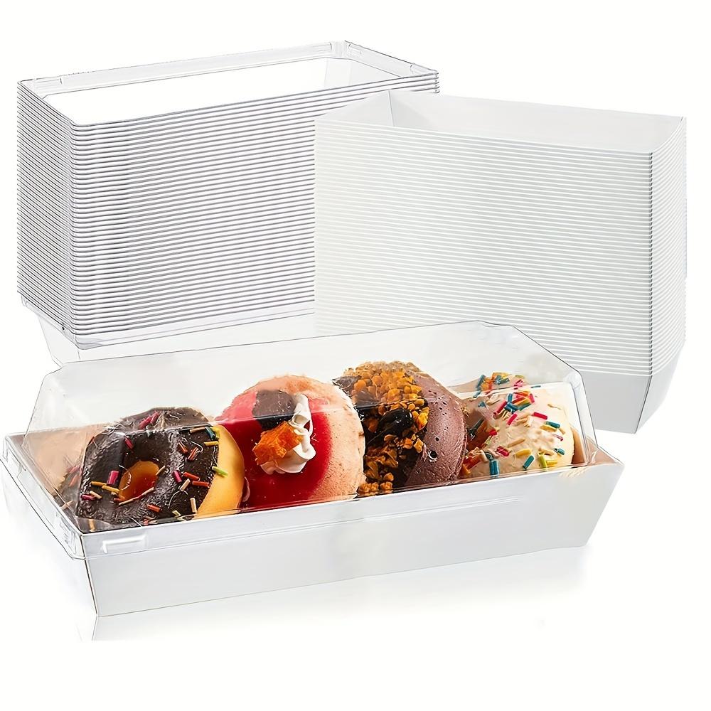 50 шт. бумажные коробки для сэндвичей с прозрачной крышкой — одноразовые пищевые контейнеры для десертов, печенья, мясных закусок и булочек белый