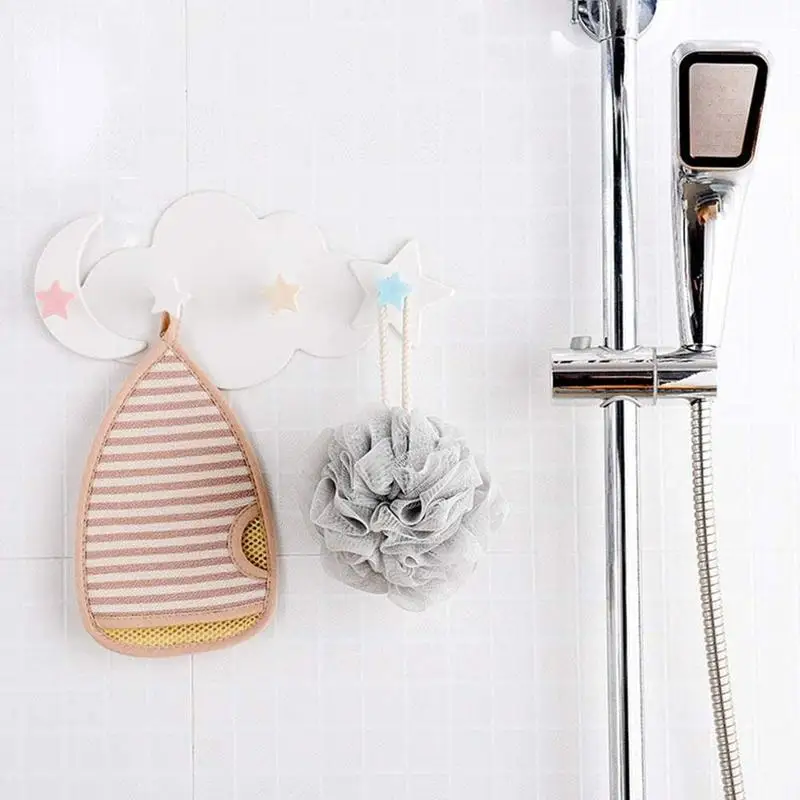 1Pcs Creative Star Moon Cloud Shape Nail-free Wall Hanging Room Hook Hanger Clothes Kids Hooks Storage Kitchen Decorative K C1W0