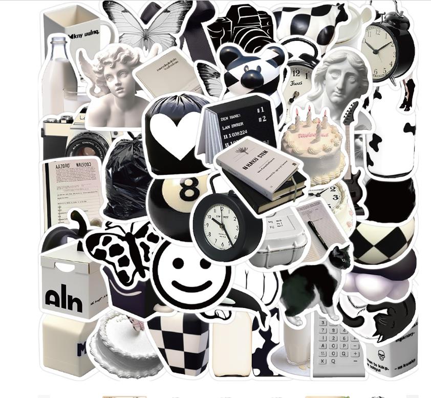 50 шт. черно-белая простая стильная мультяшная граффити водонепроницаемая наклейка индивидуальное украшение креативная чашка для воды